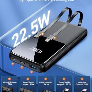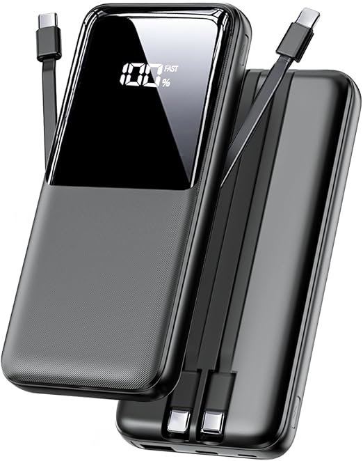 • Portable Charger with 2 Built in Cables >>>: PB-08 battery pack has 1* iOS cable, 1* Type-C cable, 3* Charging ports(USB-A, Type-C, Micro), which supports charge almost all smart devices on market. Widely compatible with iPhone 16/15/14/13/12/11 series, iPad series, Samsung S23,S22,S21,S20 series, Google series and other smart cell phones, tablets or electronic devices. No need to carry various cables during the trip any more! (The adaptor not included)(Airline-approved)